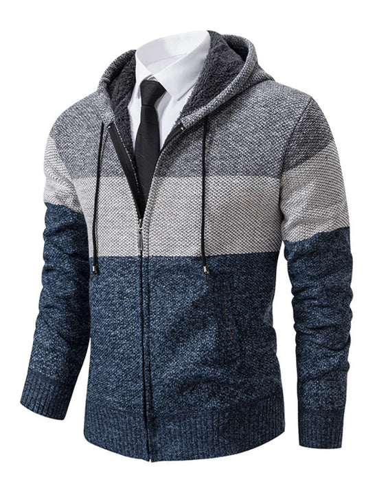 Men's Plus Size Color Block Hooded Zip-Up Cardigan