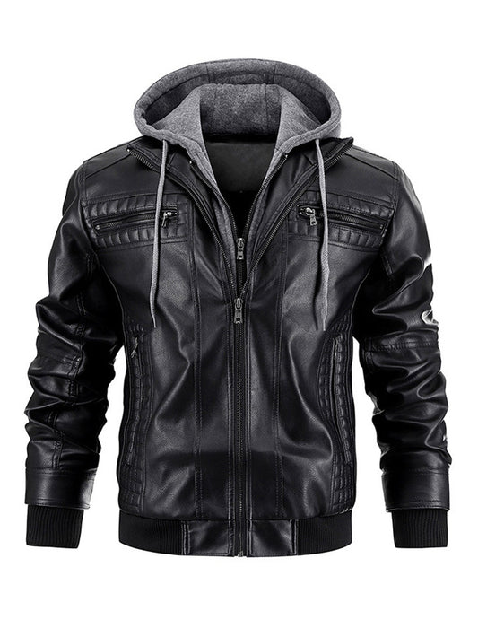 Men's Faux Leather Jacket Motorcycle Jacket Waterproof Windproof PU Moto Vintage Bomber Hoodie With Removable Hood