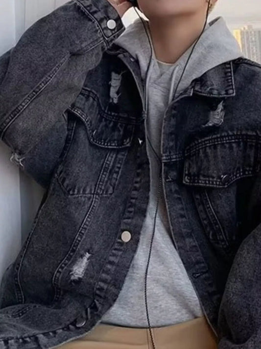 Regular price HK$360.00Regular priceUnit price / perHK$360.00Sale price HK$360.00Men's Full Size Distressed Button Up Denim Jacket Plus Size