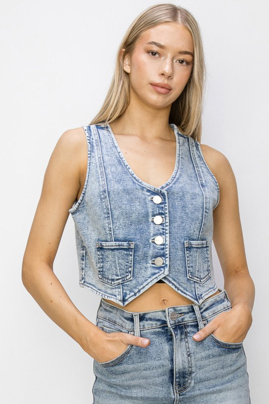 Sold outRISEN Button Down Crop Denim Vest
