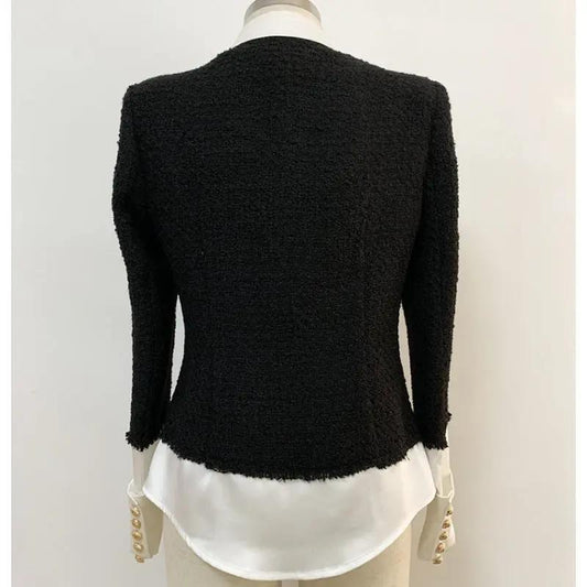 Regular price HK$366.00Regular priceUnit price / perSale price HK$366.00Europe and the United States fashion women's shirt spring and autumn new design sense ruffled stitching solid color round neck net red shirt