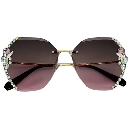 Lunette De Soleil Luxury Rhinestone Sun Glasses Female Shades Cutting Lens Rimless Sunglasses