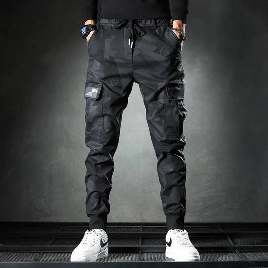 Spring/summer thin camouflage casual pants men's fashion brand new slim-fit elastic waist corset cargo long pants