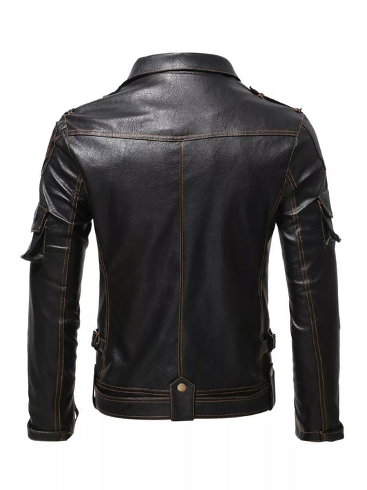 Men's Full Size Faux Leather Motorcycle Jacket Plus Size