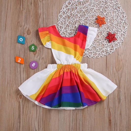 Colorful rainbow-striped dress for kids, perfect for adding vibrant flair to any occasion
