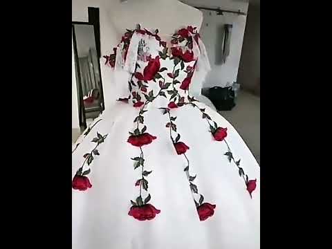 Long dress fuchsia and white lace trailing sexy bride wedding dress