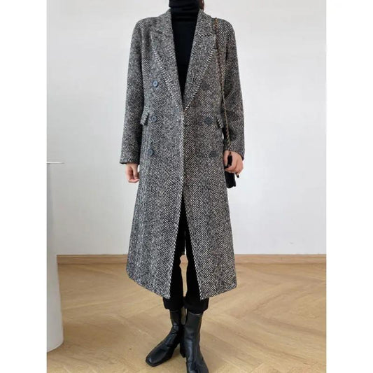 Dongdaemun herringbone gray wool coat women's new autumn and winter suit collar wool coat