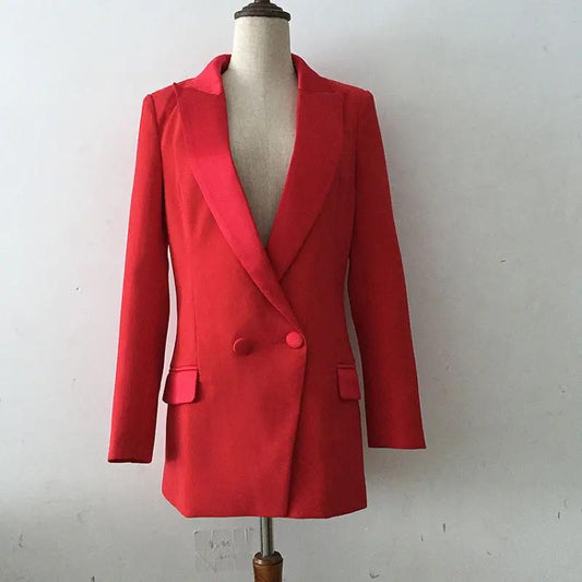 Regular price HK$623.00Regular priceUnit price / perSale price HK$623.00European fashion new women's coat, red satin-stitched collar, long slim suit.