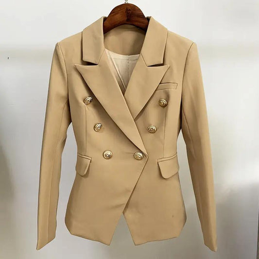 New star women's jacket jacket fashion metal lion head button double breasted slim suit tan