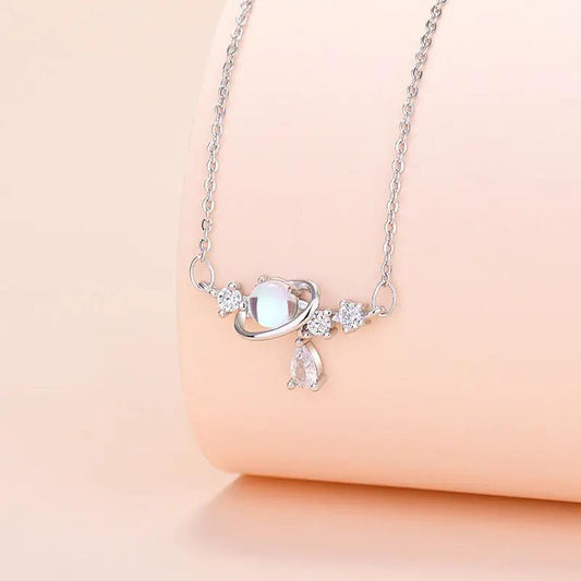 Exquisite Planetenhalskette: trendiger Zirkonia-Tropfen, kunstvoll und modisch.