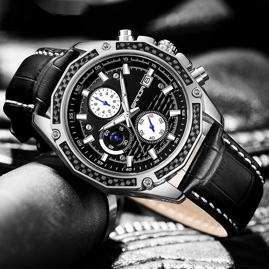 Quarzarmband-Kalender-Herrenuhr mit drei Augen und sechs Nadeln
